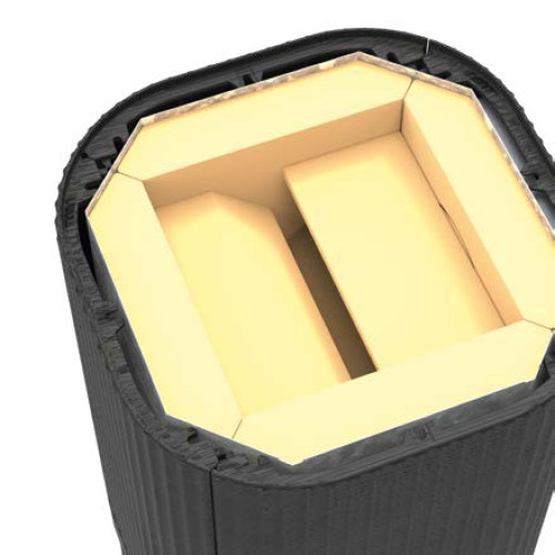 Uvnitř Sanna zaujme velkou šamotovou akumulační jednotkou, která efektivně absorbuje generované teplo a po mnoho hodin ho příjemně a rovnoměrně uvolňuje do místnosti.