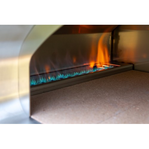 Výkonná rodinná pec s pečící plochou 90 x 50 cm umožňující topení plynem nebo dřevem. Dokonalé zaoblení klenby usnadňuje cirkulaci vzduchu. Fontana je jediný výrobce, který umisťuje plynový hořák na dno, nikoliv na stranu trouby, čímž dochází k ideálnímu rozptylu tepla v kratším čase. Důmyslný odvod kouře nutí teplo zůstat delší dobu v pečící komoře, čímž dochází ke snížení spotřeby plynu. Toto vše jsou výsledky špičkového inženýrství, které odpovídá tradici italské kuchyně.