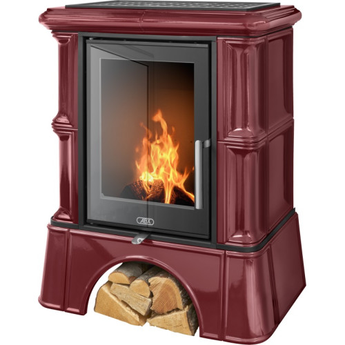 Kachlová kamna ABX Bavaria exklusive kachlový sokl, černý korpus, opláštění kachle bordo