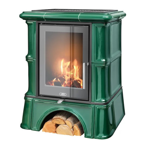 Kachlová kamna ABX Bavaria exklusive kachlový sokl, černý korpus, opláštění kachle flaschengrün