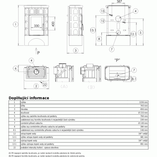 - vnější průměr kouřovodu - ⌀150 mm