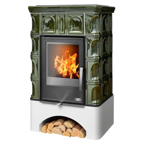 Kachlová kamna ABX Britania s výměníkem, černý korpus, opláštění kachle zelená