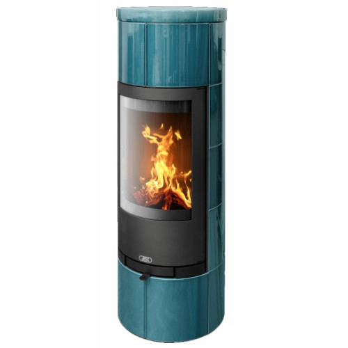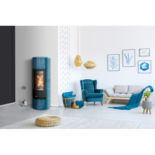 Kachlová kamna ABX Kastilie černý korpus, opláštění kachle aquamarín