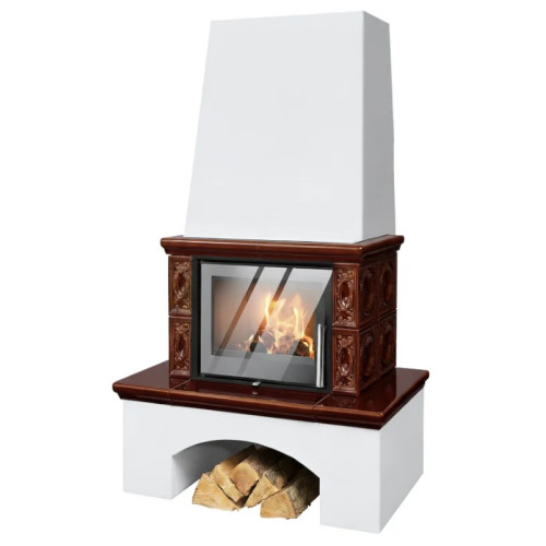 Kachlová kamna ABX Lombardie exklusive, bílý sokl, černý korpus, opláštění hnědá kachle