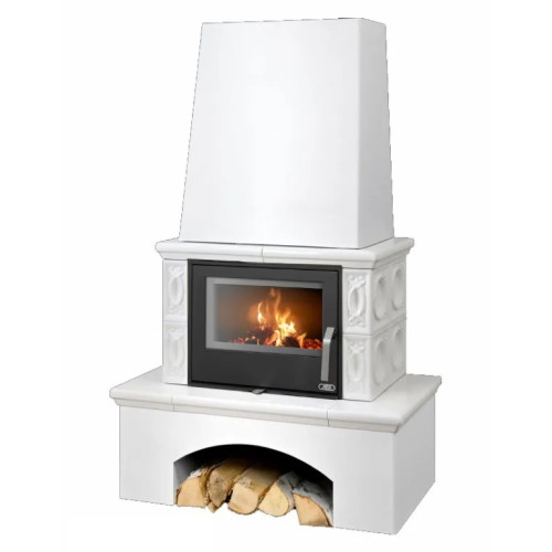 Kachlová kamna ABX Lombardie, bílý sokl, černý korpus, opláštění kachle perle