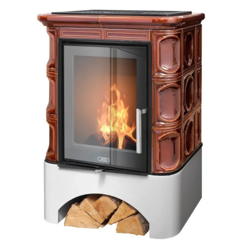 Kachlová kamna ABX Marina exklusive, rovný sokl, černý korpus, opláštění kachle hnědá