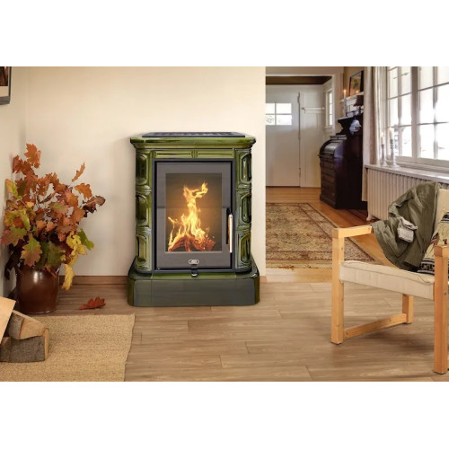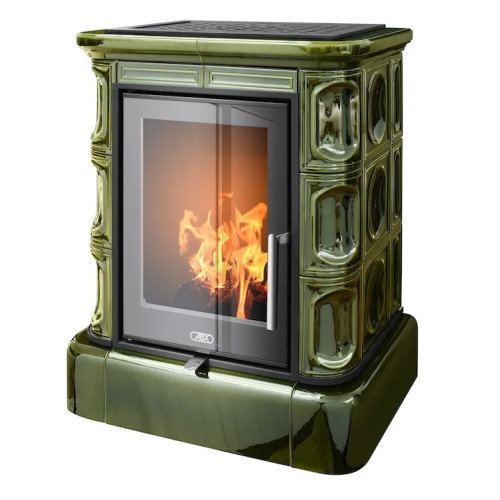 Kachlová kamna ABX Marina exklusive, kachlový sokl, černý korpus, opláštění kachle zelená