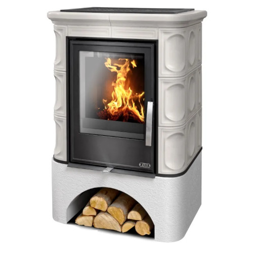 Kachlová kamna ABX Marina rovný sokl, černý korpus, opláštění kachle perle