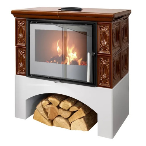 Kachlová kamna ABX Panonie exklusive, rovný sokl, černý korpus, opláštění kachle hnědá
