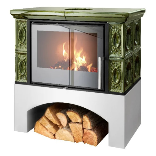 Kachlová kamna ABX Panonie exklusive, rovný sokl, černý korpus, opláštění kachle zelená