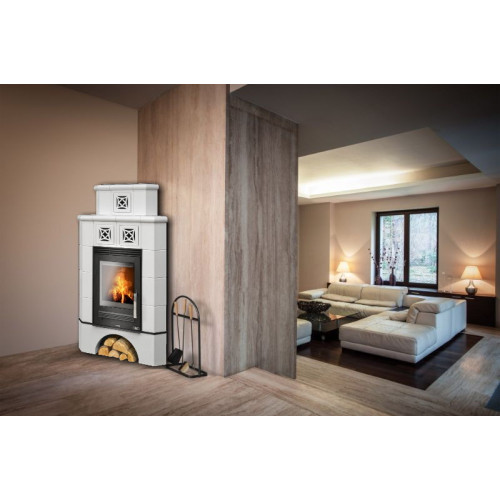 Kachlová kamna ABX Regina rohová černý korpus, opláštění kachle bílá