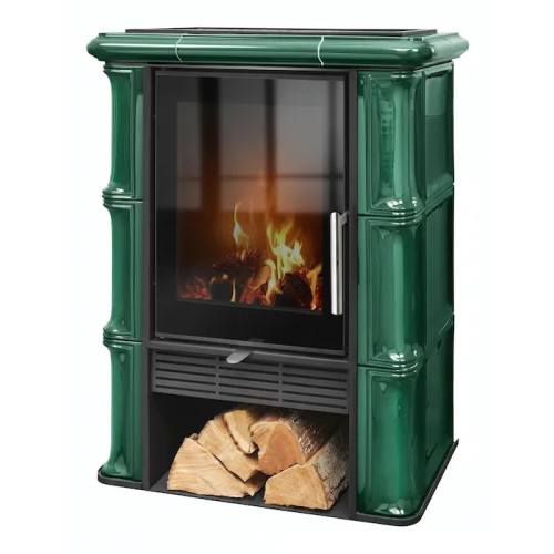 Kachlová Krbová kamna ABX Sicilia exklusive černý korpus, opláštění kachle flaschengrün