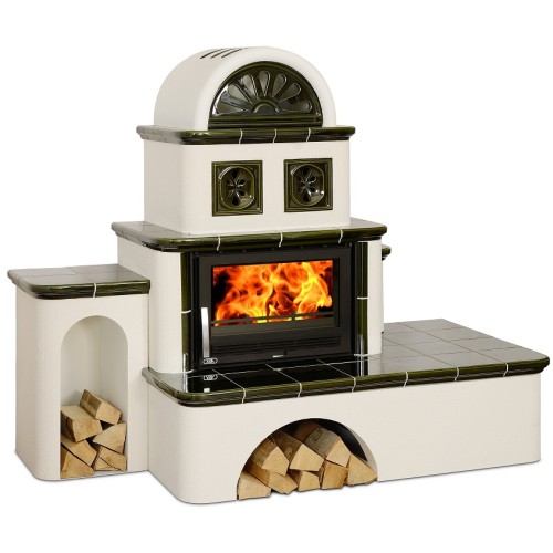 Kachlová pec ABX OXFORD 15 kW, zelená levá, TV výměník 7 kW