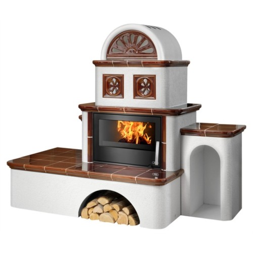 Kachlová pec ABX Oxford s výměníkem 7kW černý korpus, opláštění kachle hnědá - pravé provedení