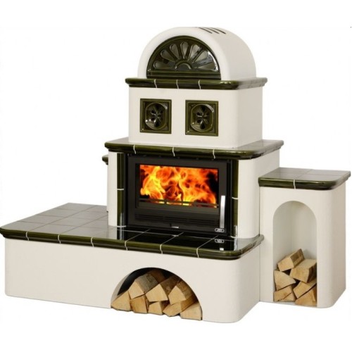 Kachlová pec ABX Oxford s výměníkem 7kW černý korpus, opláštění kachle zelená - pravé provedení
