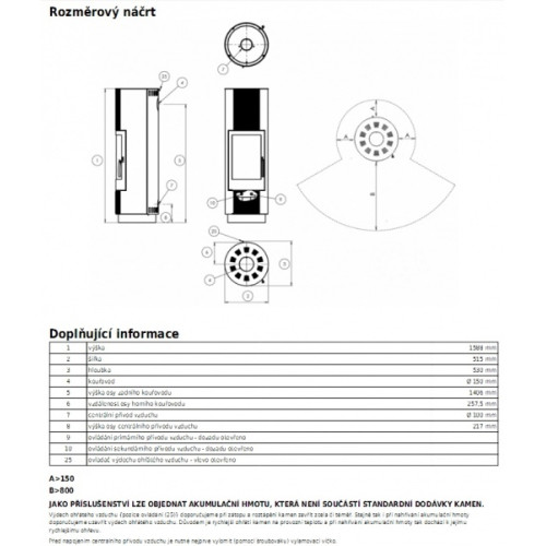 vnější průměr kouřovodu - ⌀150 mm