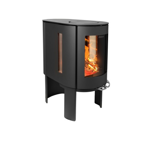 Konvekční krbová kamna Aduro 23 s varnou plotnou. Malá praktická kamna s výjimečným designem a bočním prosklením.