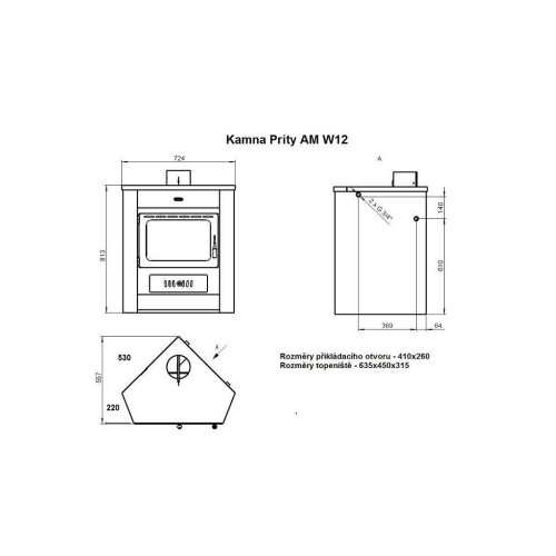 | Rozměry topeniště (Š x H x V) | 650 х 450 х 360 mm |