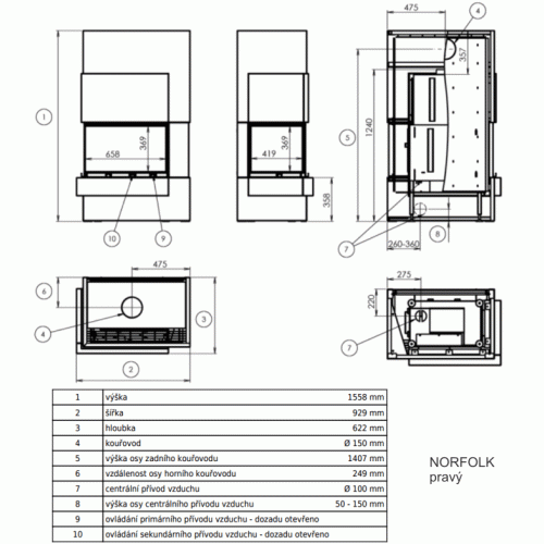 - Kamna se vyrábí v levé a pravé variantě.