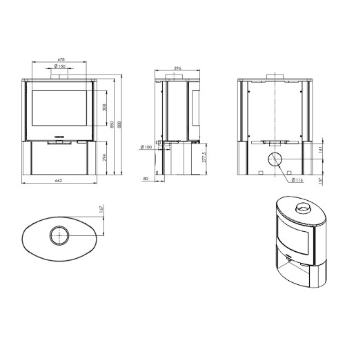 - Průměr kouřovodu: 150 mm