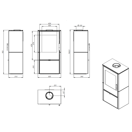 • Průměr kouřovodu: 150  mm