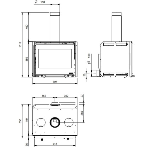 Dvouplášťová teplovzdušná krbová vložka s keramickým katalycký filtrem. Je to univerzální kazeta s vnějším teplovzdušným opláštěním z oceli a kompletní litinové topeniště vyložené keramikou Nordiker.