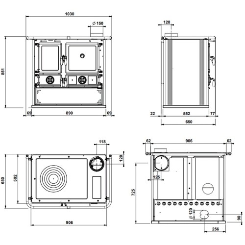 - Průměr výstupu spalin: (Ø)150 mm H/Z