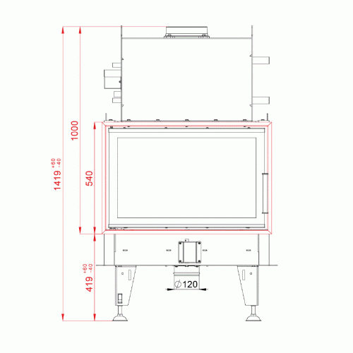 - Průhledová krbová vložka s dvířky otevíranými do strany.