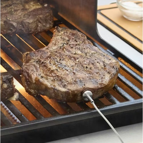 Už nikdy nemusíte hádat, zda je jídlo hotové. Integrovaný digitální teploměr s připojením Wi-Fi® (včetně jedné kabelové jehly) sleduje teplotu za vás. Spárujte gril s aplikací Weber Connect® a dostávejte upozornění na smartphone v momentě, kdy je gril rozpálený nebo kdy je čas maso obrátit. Večerní grilování vám usnadní LED osvětlení Nightvision® vestavěné do rukojeti, které se automaticky rozsvítí při zvednutí poklopu.