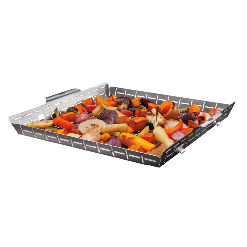 Dokonalá zelenina a drobné delikatesy bez rizika propadnutí - s grilovacím košem Weber CRAFTED posunete přípravu příloh na novou úroveň. Díky konstrukci s jemnými otvory dochází k ideální cirkulaci horkého vzduchu, což pokrmům dodává nezaměnitelnou kouřovou chuť, aniž byste se museli bát, že kousky cukety nebo krevety skončí v útrobách grilu.