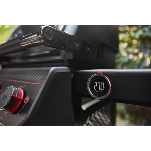 - Umožňuje vzdálené monitorování pomocí aplikace Weber Connect® pro kontrolu teploty jídla s upozorněním na potřebu obracení, možnost podávání pokrmu a ukončení přípravy.