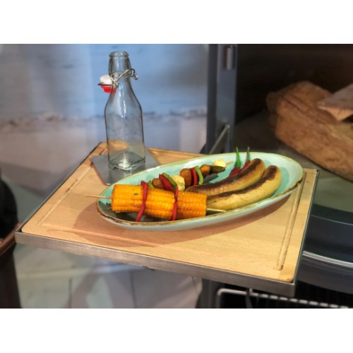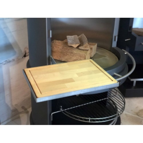 S našimi novými praktickými závěsnými stolky můžete svůj gril Firestar proměnit v plnohodnotnou venkovní kuchyni. Ať už na krájení masa, krájení zeleniny nebo odkládání příslušenství grilu a chlazeného nápoje. Kvalitní dřevěná deska je dodávána v masivním nerezovém rámu. Obvodová drážka zajišťuje čistou práci. Vhodné pro všechny modely venkovních krbů Firestar.